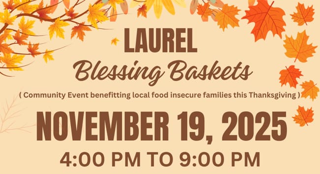 Mark your calendars for a special community event coming next month. Laurel Blessing Baskets, a heartwarming initiative benefiting food-insecure families this Thanksgiving, returns on November 19th from 4:00 PM to 9:00 PM.